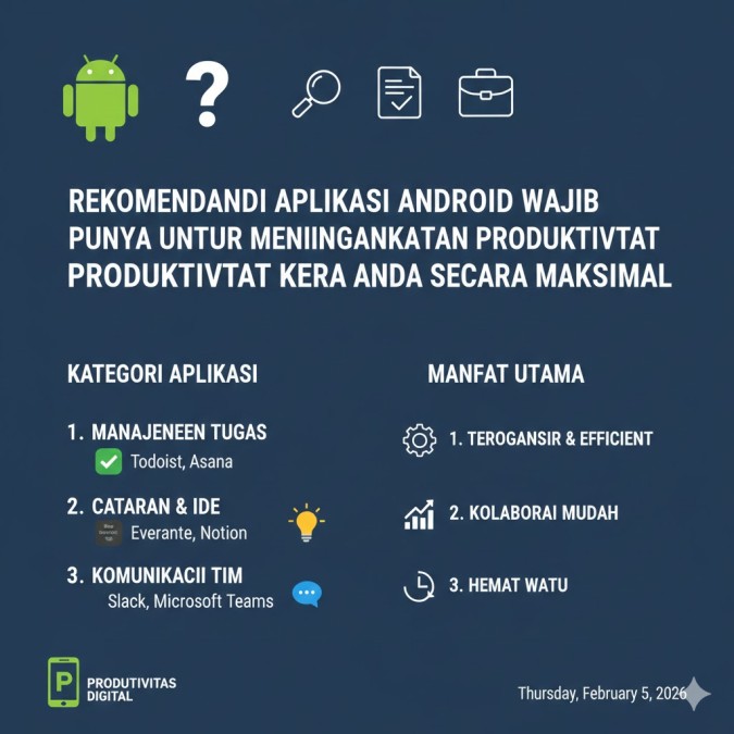 Produktivitas kerja menjadi kunci utama untuk mencapai target dan tujuan profesional di era digital yang serba cepat. Penggunaan smartphone Android yang tepat dengan aplikasi pendukung produktivitas dapat membantu mengatur waktu, menyelesaikan tugas lebih efisien, serta menjaga fokus selama bekerja. Dengan memilih aplikasi Android wajib yang sesuai kebutuhan, Anda bisa meningkatkan performa kerja secara signifikan tanpa harus menambah beban kerja. Berikut adalah rekomendasi aplikasi Android terbaik yang wajib dimiliki untuk meningkatkan produktivitas kerja secara maksimal.