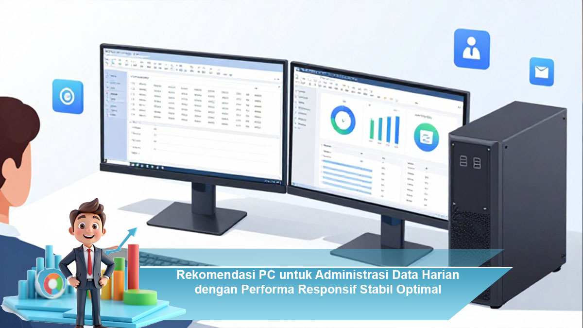 PC yang ideal untuk administrasi data sebaiknya dilengkapi prosesor minimal Intel Core i5 atau AMD Ryzen 5 generasi terbaru, RAM 8–16GB untuk mendukung multitasking, serta penyimpanan SSD minimal 256GB agar akses file cepat dan responsif. Kartu grafis terintegrasi sudah cukup karena pekerjaan administrasi jarang memerlukan grafis berat, sehingga fokus utama tetap pada kecepatan pemrosesan data.